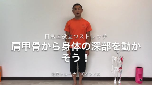 肩甲骨の動きを意識することで、身体の深部まで刺激することができます!特にお腹周りが、気になる方におすすめ!さまざまな動作に繋がる動きになりますので、体操しながら動きも身につけましょう!