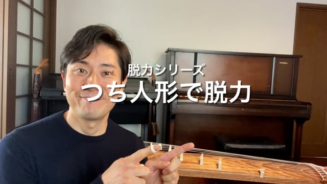 つち人形を使って古典の手の脱力の仕方の解説をしています。弦から離れない弾き方もありますが、弦からわざと手を離してしっかり動きのある、空気感や余韻のある演奏に是非トライしてみてください。