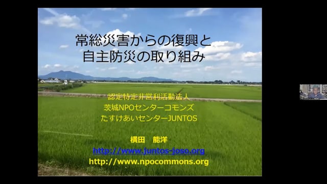 【報告タイトル】様々な課題当事者が社会的に包摂され、 多様性が尊重され、 人や組織がつながり共に行動する市民社会をつくる“つなぎ手”~ 常総水害(2015年)で被害を受けた茨城県常総市の経験から~