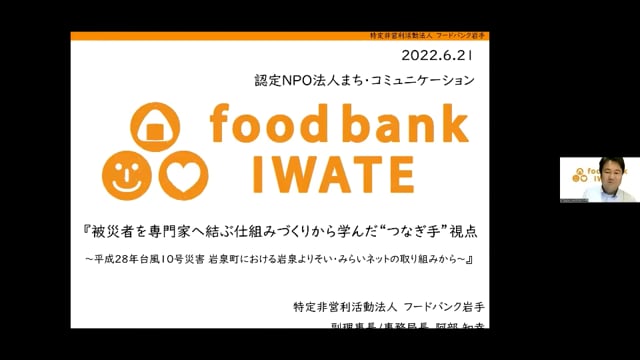【事例報告者】阿部知幸氏(NPO法人フードバンク岩手 副理事長・事務局長、3.11から未来の災害復興制度を提案する会 代表)