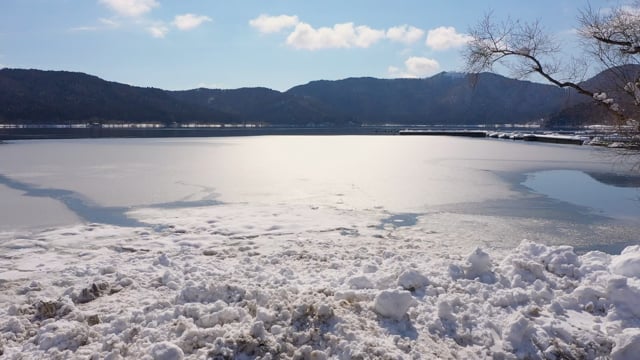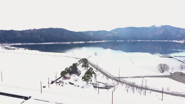 滋賀県長浜市にある余呉湖のドローン映像 浮上シーンです