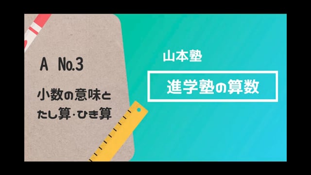 ●00:45~整数と小数の関係 ●17:37~小数の大小 ●22:05~小数のたし算・ひき算 ●32:26~小数で表されるもの ●43:36~文章問題