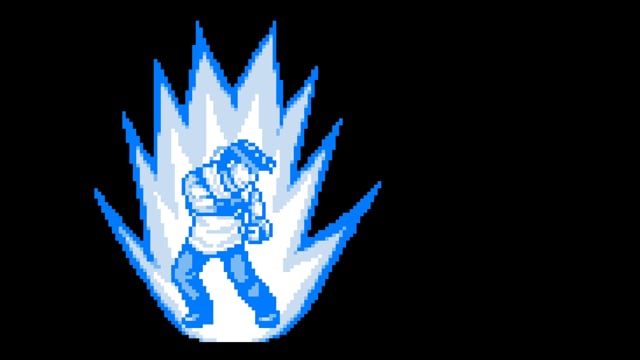 Tシャツを着た男性格闘家がオーラを纏うドット(ピクセルアート)の動画です。