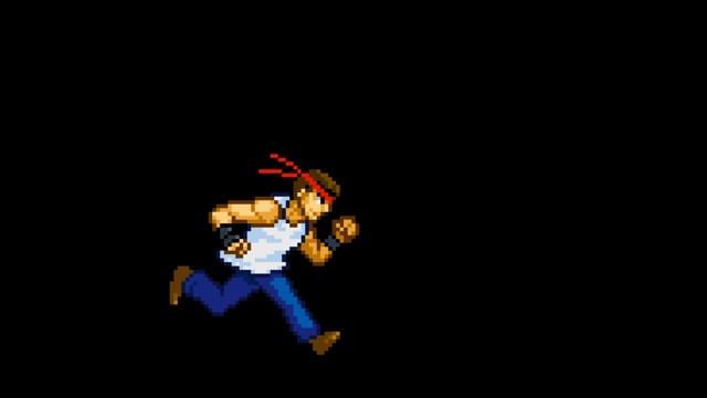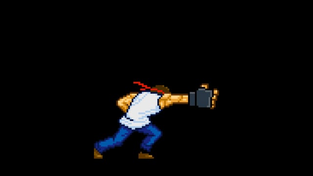 Tシャツを着た男性格闘家が連続パンチしているドット(ピクセルアート)の動画です。