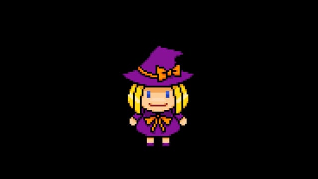 これはハロウィンの魔女をイメージしたピクセルアートの動画作品です。 背景は透過しています。