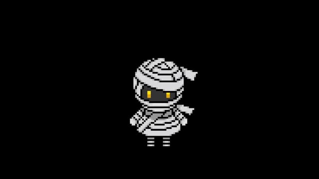 これはハロウィンのミイラ男をイメージしたピクセルアートの動画作品です。 背景は透過しています。