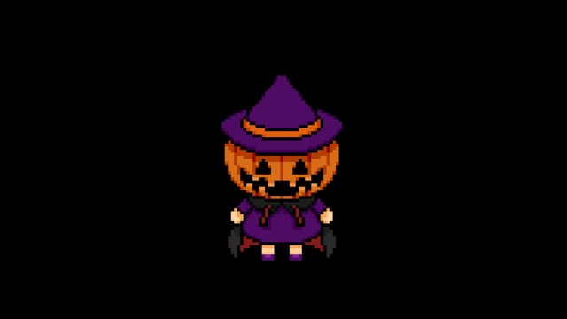 これはハロウィンをイメージしたピクセルアートの動画です。 背景は透過しています。