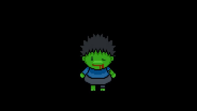 これはハロウィンのフランケンシュタインをイメージしたピクセルアートの動画作品です。 背景は透過しています。